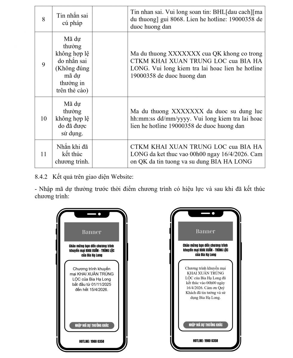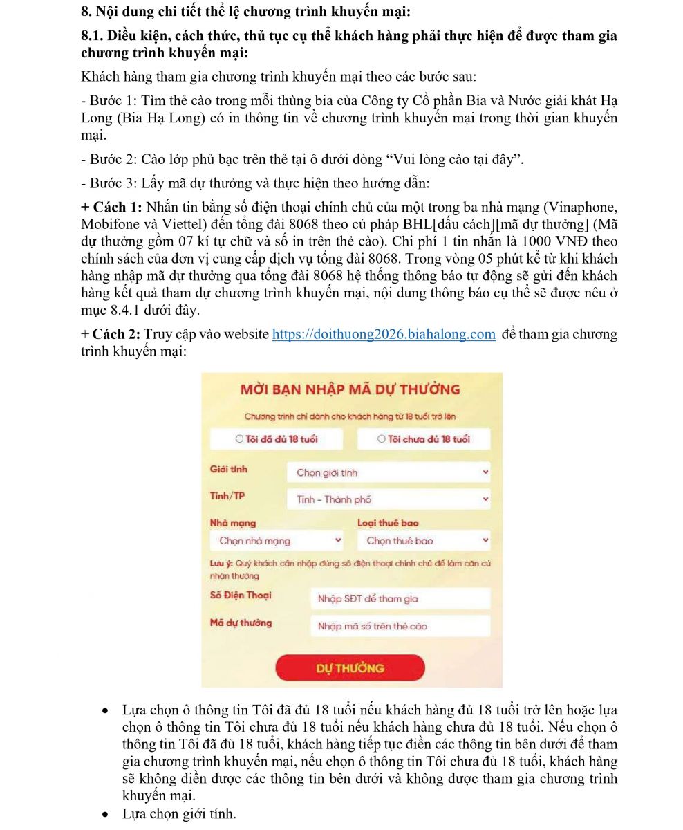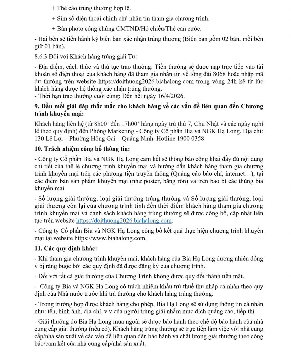 2. Hàng hóa, dịch vụ khuyến mại: Sản phẩm bia lon Hạ Long Legend, bia lon Hạ Long Legend Sleek, bia lon Hạ Long Sapphire, bia lon Hạ Long Sapphire Sleek, bia lon Sapphire Golden Sleek, bia lon Hạ Long Idol Sleek (loại lon 330ml, 24 lon/thùng).
